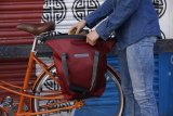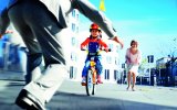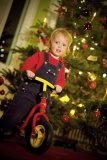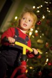 Eine als Weihnachtsmann verkleidete Person auf einem Liegedreirad.
