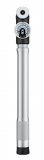 Eine Person hält ein Laufrad an der Nabe vor sich und greift die Mutter eines Schnellspanners mit zwei Fingern.