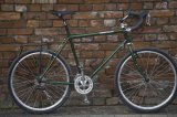 Ein Kind mit einem Laufrad vor einem Mann mit einem historischen Laufrad aus Holz.