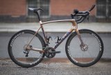 Eine Unterschrift auf dem Rahmen eines Rennrades.
