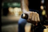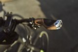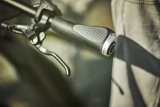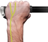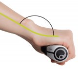 Draufsicht auf eine Hand am Fahrradlenker, überlagert von grafischen Elementen, die Nervenbahnen und einen kritischen Punkt repräsentieren.
