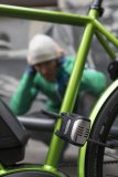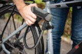 Ein an einer Wand hängendes Fahrrad ist mit einem Fahrradschloss an einer darunter angebrachten, festen Verankerung gesichert.