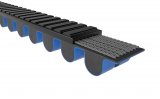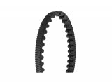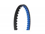 Der Riemenantrieb an einem Fahrrad im Schnee.