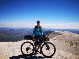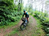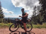 Ein Tablet liegt zwischen zwei Kaffeetassen und einem Navigationsgerät für Fahrräder auf einem Tisch. Zwei Personen beschäftigen sich mit einer Kartenanwendung darauf.