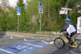 Detailaufnahme des Kennzeichens am hinteren Gepäckträger eines S-Pedelecs.