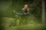 Ein Mann steht mit einem E-Bike in einem Fahrradladen und unterhält sich mit einer Frau und einem Mann.