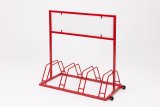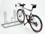 Ein Lastenrad mit einem Faltrad auf der Ladefläche, abgestellt am Rande einer großen Stellfläche für Fahrräder.