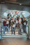 In einem einseitig offenen Metallcontainer stehen mehrere Fahrräder an Haltevorrichtungen.