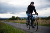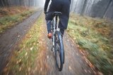 Infografik bestehend aus einem Foto eines Radfahrers und Beschriftung wichtiger Aspekte fürs Radfahren im Herbst.