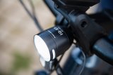 Eine Gruppe Radfahrer:innen mit deutlich sichtbarer Beleuchtung fährt bei Dunkelheit auf einer Straße auf die Kamera zu.