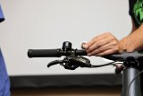 Ein Apple Airtag im Inneren einer demontierten Fahrradklingel an einem Lenker.