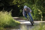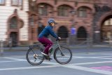 Ein neongelbes, längliches Objekt, das anstelle eines Flaschenhalters am Unterrohr eines Fahrrads montiert ist.