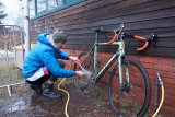 Mann putzt E-Bike.
