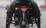 Freisteller eines Fahrradblinkers an ausgegrautem Fahrradlenker.