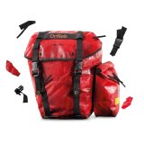 Eine Person schneidet mit einem Arbeitsmesser und einem Metalllineal Materialien einer Fahrradtasche.
