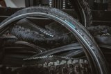 Detailaufnahme eines Fahrradreifens der Firma Schwalbe.