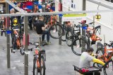 Die Hände einer Person, die ein Ladekabel am Rahmen eines E-Bikes anschließt oder abzieht.