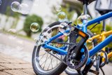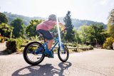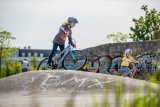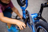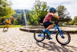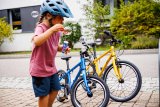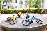 Zwei Kinderräder, die an einer Betonkante über einem Gewässer abgestellt sind.