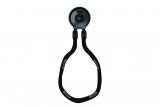 Ein Fahrrad lehnt an einem Anlehnbügel, der einem Stück Geländer ähnelt.