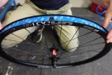 Ein Mann hantiert in einer Werkstatt an einem Kabel, dass an einem E-Bike angeschlossen ist.