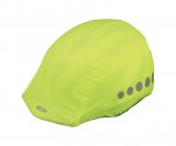 Eine Person präsentiert einen Fahrradhelm in Neongelb.
