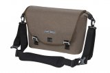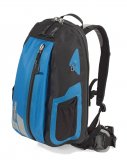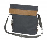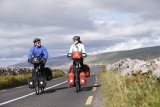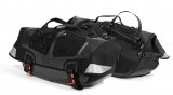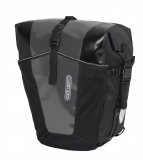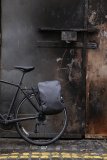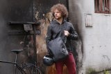Eine Person tippt mit dem Finger auf das Display eines Smartphones oder Navigationsgeräts in einer Klarsichthülle auf dem Deckel einer Lenkertasche eines Fahrrades.