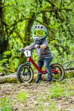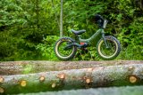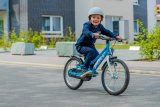 Ein Junge fährt neben einem Klettergerüst Fahrrad. Im Hintergrund folgt ein zweites Kind.