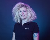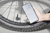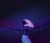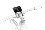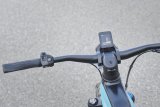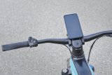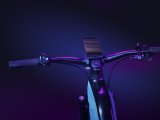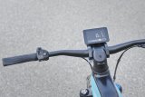 Eine Frau kniet neben einem E-Bike und setzt den Akku in den Rahmen ein.
