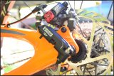 Ein Mann steht neben einem E-Bike in einem Montageständer. In der Hand hält er einen Laptop, der über Kabeln mit dem Rad verbunden ist.
