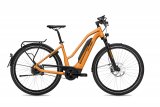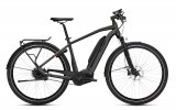 Eine Person fährt auf einem E-Bike durch die Innenstadt.