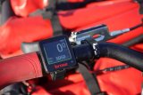 Ein Mann sitzt an einem Schreibtisch vor einem Laptop, der mit vielen Aufklebern verziert ist.