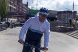 Zwei Rennradfahrer fahren auf den Betrachter zu.