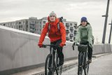 Zwei Frauen auf Gravelbikes.
