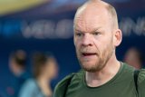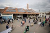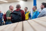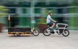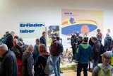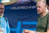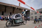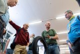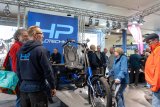Eine Teststrecke für Spezialräder in einer Messehalle.