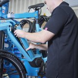 Ein Mann arbeitet an der Montage eines E-Bike-Rahmens.