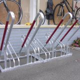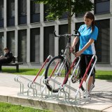 In einem einseitig offenen Metallcontainer stehen mehrere Fahrräder an Haltevorrichtungen.