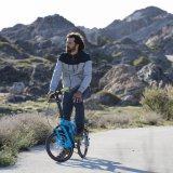 Wirkliche Falträder sind eher selten mit E‑Bike-Antrieb zu finden. Denn das Mehrgewicht schmälert ihre Handhabung deutlich. Etwas besser wird das, wenn der Akku in einer abnehmbaren Tasche verbaut ist. Als Urlaubsrad mit E‑Unterstützung eignen sich da eher sogenannte Kompakträder, die mit 20-Zoll-Rädern agil zu fahren sind. Die Rahmengeometrie ist zumeist sehr universell gehalten, nicht selten lassen sich die Räder werkzeuglos an unterschiedlichste Körpergrößen anpassen. Mit ebenso leicht klappbaren Lenkern, Pedalen oder Rahmen finden sie auch im Camper-Mobil oder in kleinen Stadtwohnungen ein sicheres wie trockenes Plätzchen.